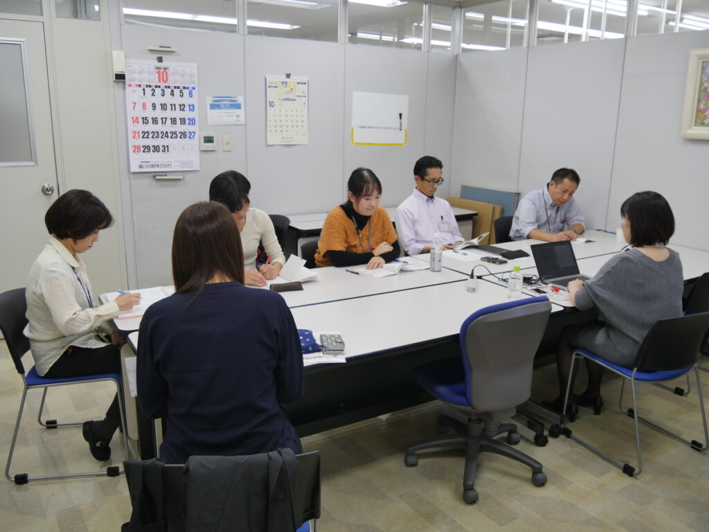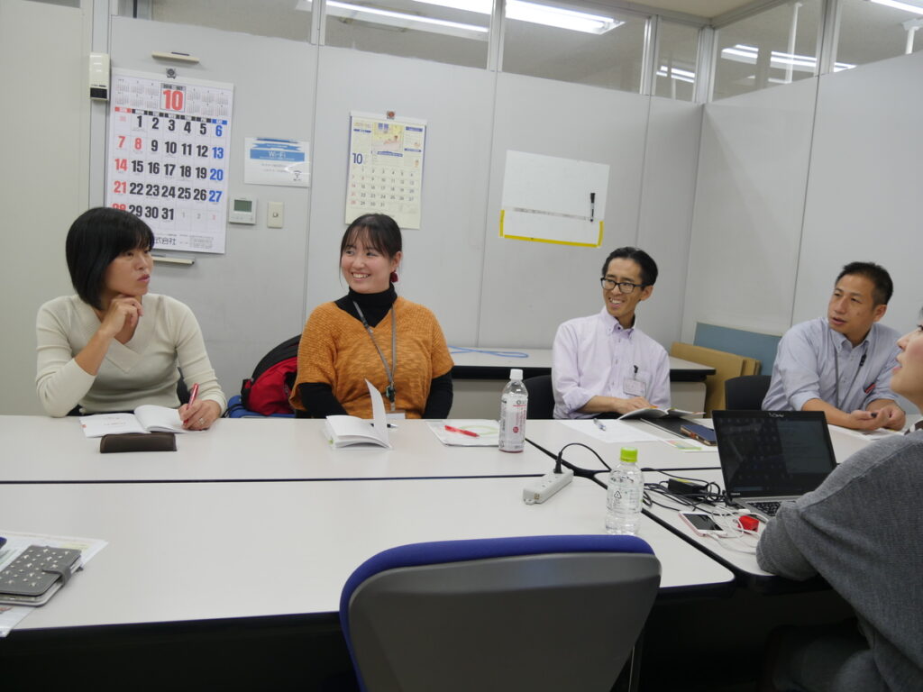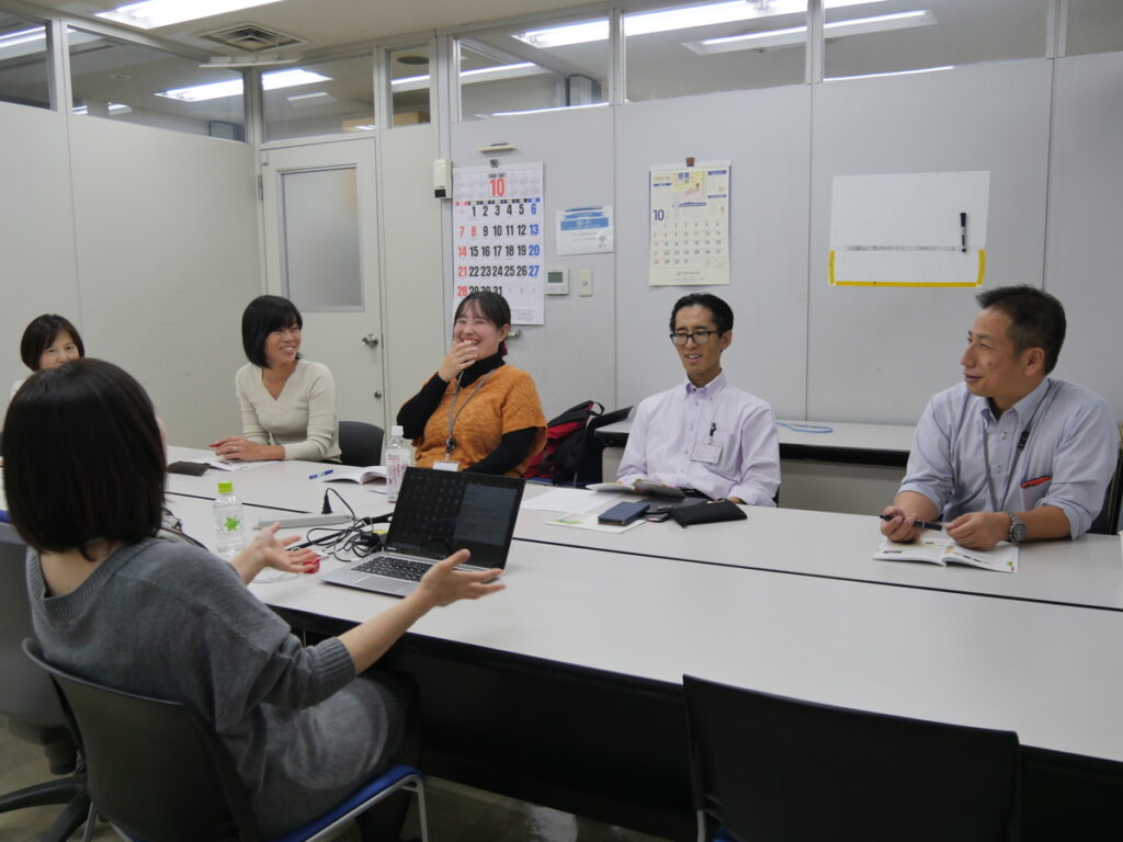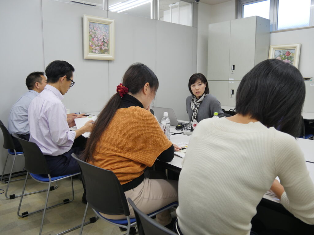 ②研修当日は講師が来社。社内会議室にて事前に見た動画の感想や質問のシェア、前回立てた実践課題の報告、次回までの実践課題の設定など、レクチャーというよりは講師と参加者、または参加者同士のコミュニケーションの場となります。
