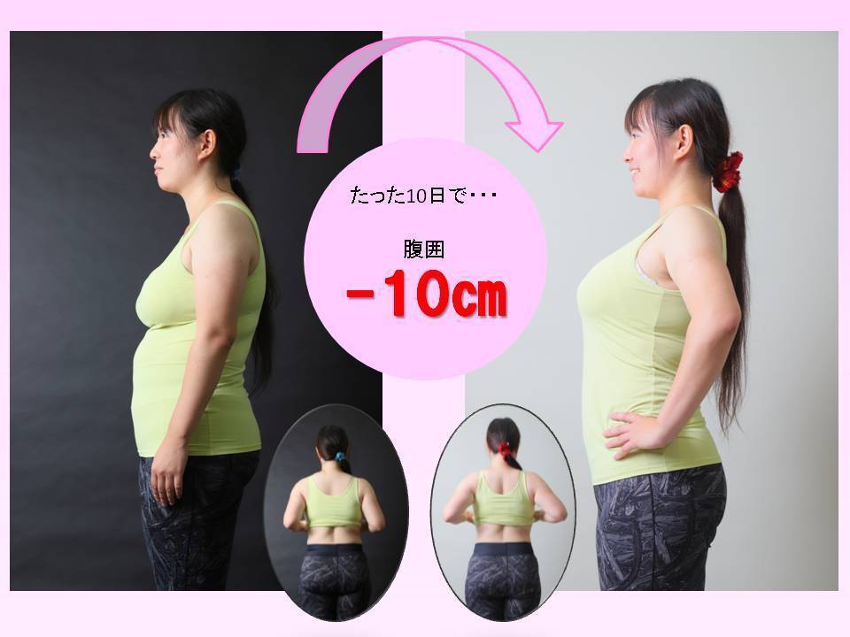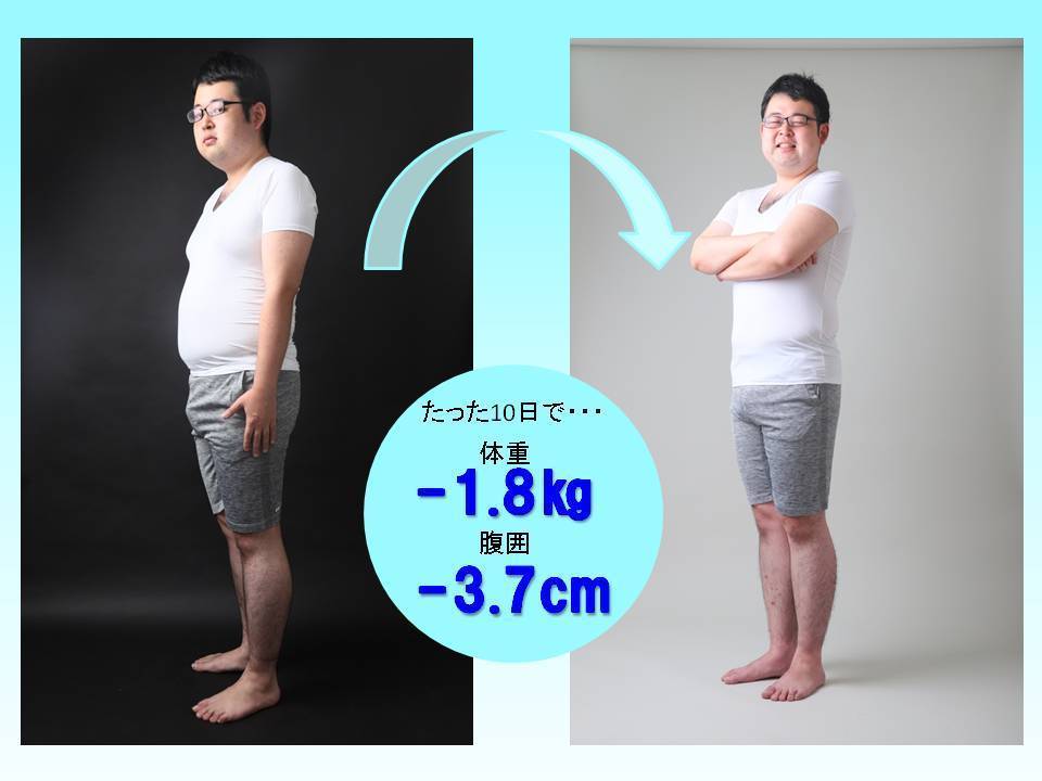 全体の特徴として、体重に比べてへそ回りのサイズがダウンしている人が多くみられました。特に上記Eさんは10日間で体重が増加したにも関わらず、へそ回り-10cm以上という面白い結果になりました。ご飯をたくさん食べるので、「食べない」ダイエットと違ってむしろ体重が増えることもあります。しかし、筋肉は脂肪よりも重いとよく言われるように健康的で引き締った身体は重いのです。へそ回り-10cmとなれば見た目の変化も抜群!