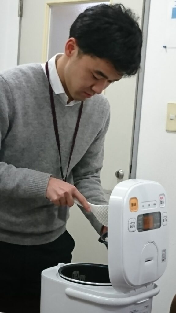 お昼には5名ほどの社員がおかずを持って集合し、みんなで炊飯器を囲みます。普段なかなか一緒にならない人とも会話が弾み、コミュニケーションの場にもなっていました。今後も定期的に開催していきたいイベントとなりました。