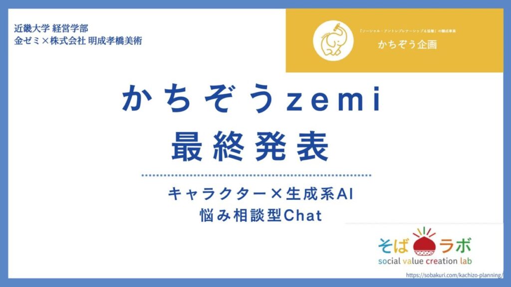 2025年6月からスタートした関西大学横山ゼミ主宰の「かちぞうzemi2025」も、先日2025年12月7日関西大学梅田キャンパスで開かれた最終報告発表会を持って閉幕となりました。キックオフイベントからの6ヶ月間の集大成として、各ゼミの大学生たちが成果発表を実施。審査員による公正な審査のもとわたしたちIKIGAI WORKSと森口ゼミB(ハッピーターンチーム)のグループは敢闘賞をいただくことができました。今回は受賞内容やその他のチームの様子などお伝えしていきます。